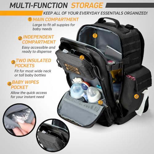 SHARKMOUTH Diaper Bag with Changing Pad – Large Military Daddy Gear Backpack for Hiking Travel Camping, Black, Modern