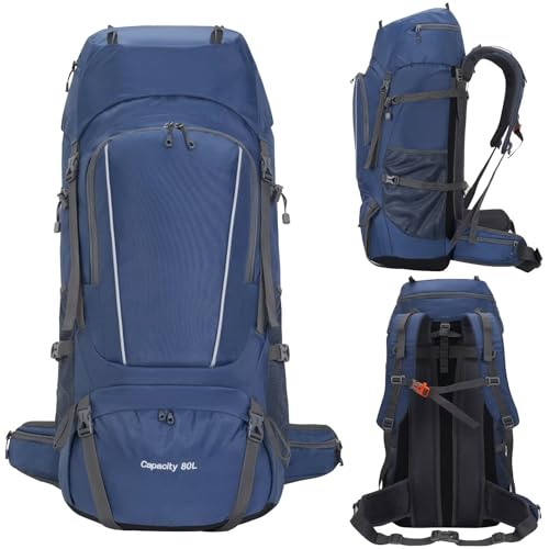 Ezmina 80L Hiking Backpack with Rain Cover Large Camping Rucksack for Men Women Lightweight Travel Backpacking Waterproof Trekking Bag Hiker Daypack for Touring Climbing Outdoor Sport Mountaineering