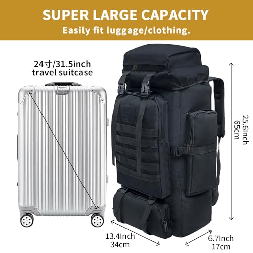 Vaupan Hiking Backpack, 80L Camping Backpack, Waterproof Large Outdoor Sport Travel Daypack Molle Rucksack for Men Women (Black)