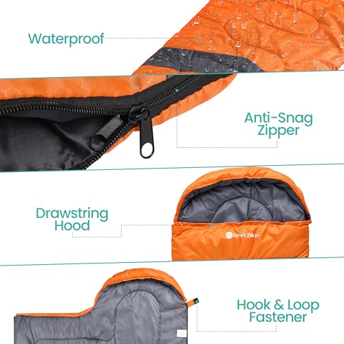 𝐄𝐚𝐬𝐲-𝐭𝐨-𝐂𝐥𝐞𝐚𝐧 𝐖𝐚𝐭𝐞𝐫𝐩𝐫𝐨𝐨𝐟 𝐄𝐱𝐭𝐞𝐫𝐢𝐨𝐫: The waterproof outer shell wipes clean with a damp cloth or can be machine washed for convenience after outdoor use. Snag-free zip & adjustable hood features a smooth double-sided zip and an adjustable drawstring headrest to help retain warmth for a restful night’s sleep.