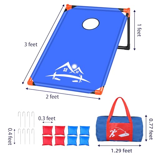 FUN FOR ALL AGES: Just pick up the bean bag, aim at the hole, and let it fly, this is the rule. This is a funny and easy game designed for both adults and kids.It can be played indoor&outdoor ike parks, backyards, campgrounds, beaches, backyard, camping trips and more