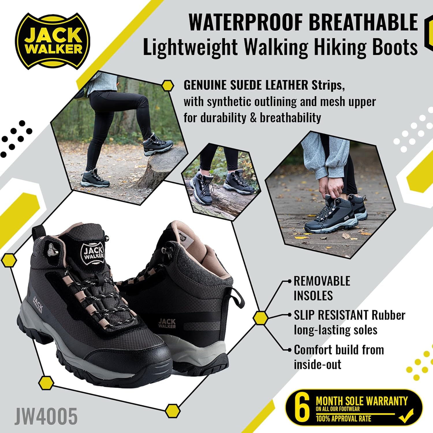 Jack Walker Women Waterproof Hiking Boots Lightweight Trekking Walking Shoes Pink JW4005