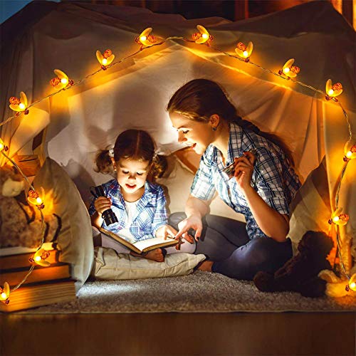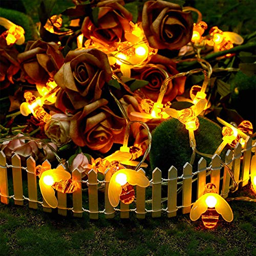 【Indoor/Outdoor Perfect Decor】Battery powered led string lights with 30 cute honeybees, creating a warm and joyful atmosphere. With waterproof design, the bumble bee lights not only suit for indoor bedroom living room garland decor, also can be used as outdoor garden bush patio yard porch fence gazebo balcony camping decorative lights;