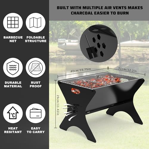 Stylish Design: With stylish black design, this campfire grill can match any outdoor settings and create a haven of warmth and ambiance.This portable fire pit can be used as wood fire pit, BBQ grill or camp stove to meet your various needs.