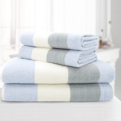 Velosso 4pce Premium 100% Cotton Towel Bale Set Multi Striped Ombre Hand Bath Towels Blue Grey 2 Hand with 2 Bath Towels Bundle Set Super Absorbent Quick Drying