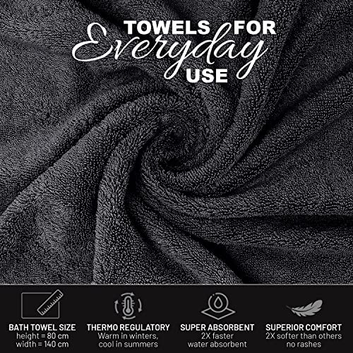 X11 Homeware Bath Towels Pack of 4 Egyptian Cotton Towel Set Highly Absorbent Soft Bathroom Towels Set of 4 Ring Spun Cotton Quick Dry Large Towels (Black)