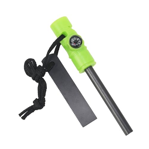 🔥 Essential 5-in-1 Survival Tool – Be Prepared Anywhere – This flint and steel fire starter kit includes a high-temperature magnesium rod, multi-tool steel striker, built-in compass, emergency whistle, and sturdy cord. A must-have for campers, hikers, and survivalists.