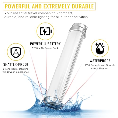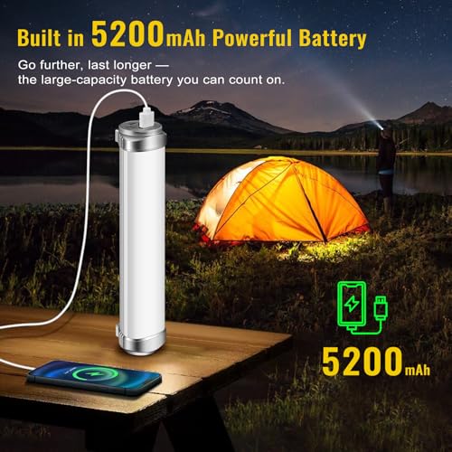 Camping Lights, 8 Dimmable Levels LED Tube Work Light Bar, 5200mAh Portable USB Rechargeable IPX8 Waterproof Magnetic Emergency Lamp for Camping, Hiking, Power Outage