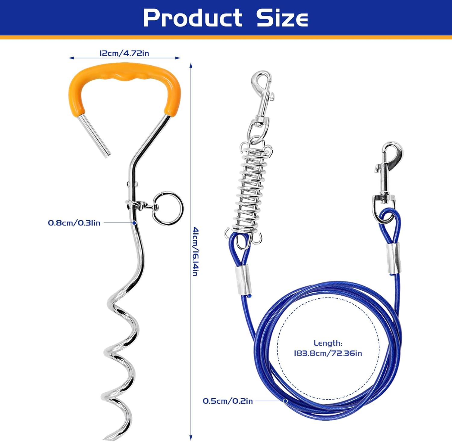 Aleker Dog Tie Out Cable and Stake, Heavy Duty Dog Spikes for Ground, Dog Stake for Camping, Puppy Pet Dog Stake and Dog Leash for Outdoor, Backyard or Camping (1.8m)