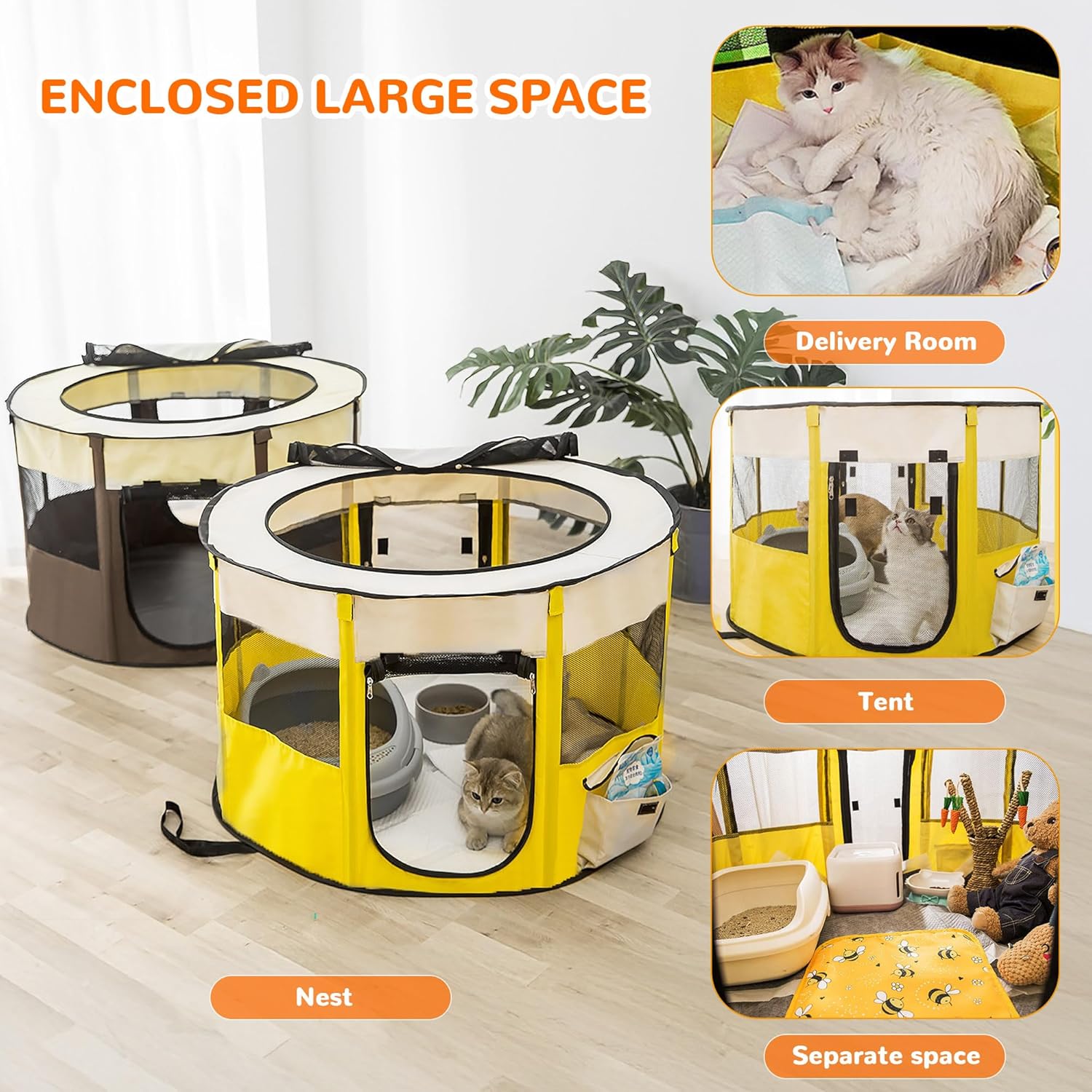 ALLSOPETS Cat Playpen for Dog, Foldable Pet Play Pen for Indoor Outdoor Use, Portable Dog Cat Crate Tent for Puppies Kittens, Pop-Up Pet Cage for Travel Camping (Brown, L)
