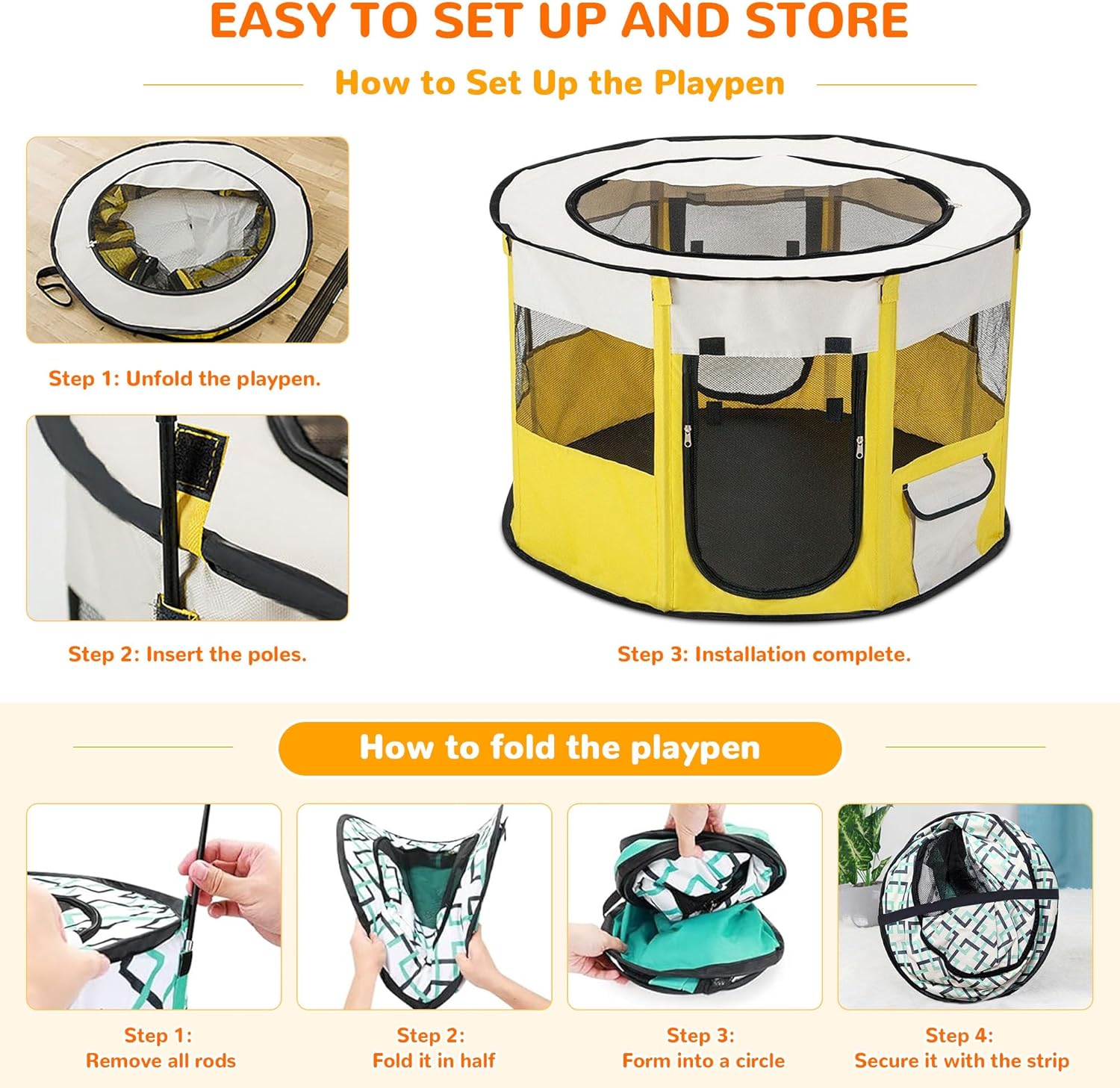 Protable & Lightweight: ALLSOPETS dog playpens are a great alternative to traditional kennels! Lightweight yet sturdy, it’s perfect for travel, camping and easy mobility. It also folds flat when not in use for easy portability and storage.