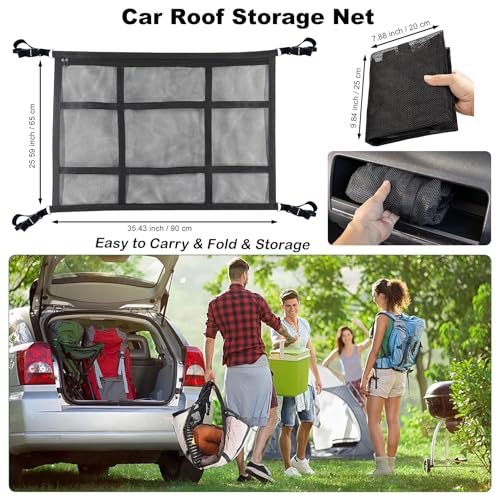 💎【Suitable for Most Vehicles】❤️※ Car roof storage net can be installed in most cars with four handlebars such as SUV,Jeep,Van,Lorry,Campervans,Motorhome. The size of cargo netting is 90 cm x 65 cm. The buckle is adjustable, you can adjust the height of the ceiling storage net.