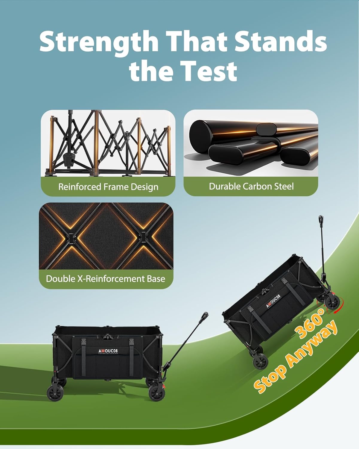 All-Terrain Mobility and Dual Brakes: Just like an off-road truck needs the right tires, this folding festival trolley is equipped with extra-wide (7″ x 4″) 360° rotating wheels that grip sand, gravel, dirt, and grass with ease. Whether rolling across beaches, along rocky trails, or around festival grounds, this folding trolley with wheels ensures a smooth and hassle-free journey. The dual-brake system ensures this foldable trolley on wheels stays securely positioned, even on slopes.