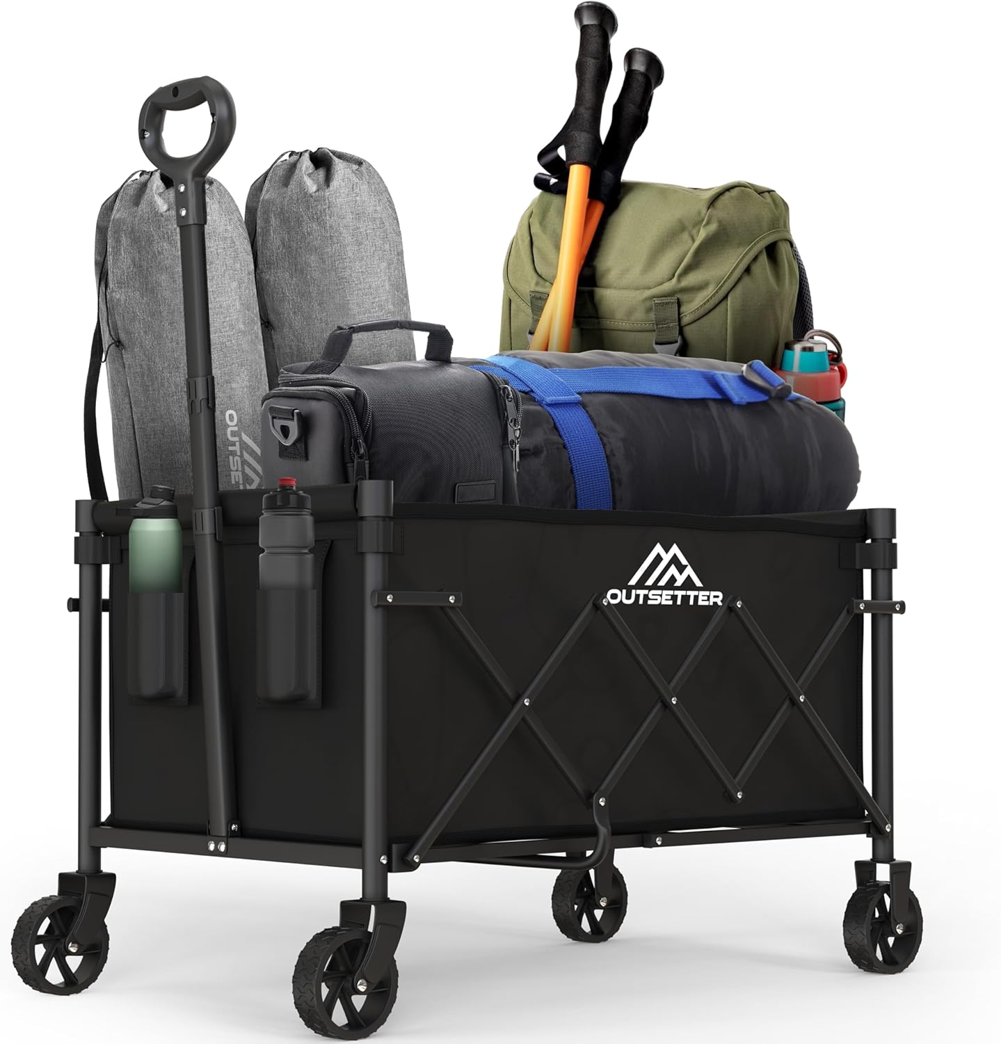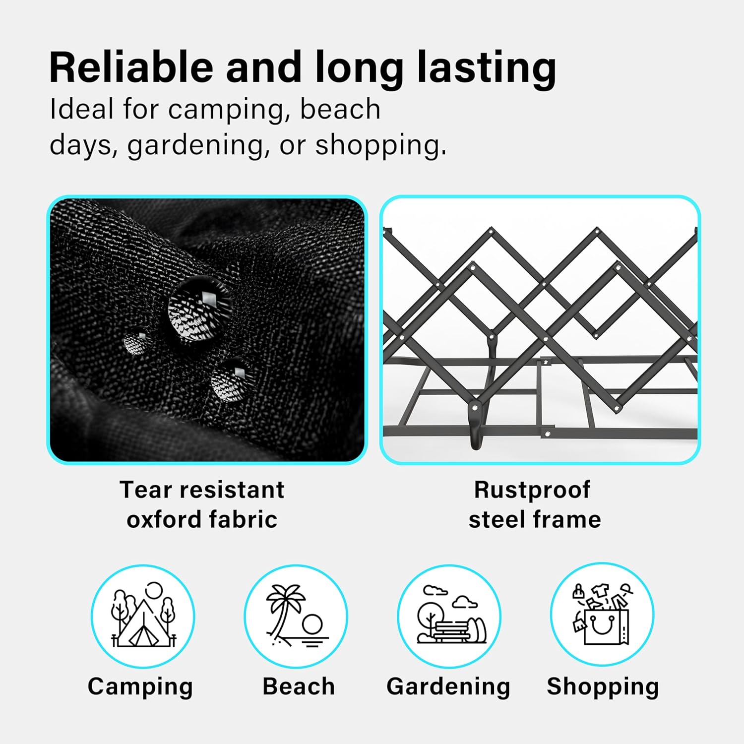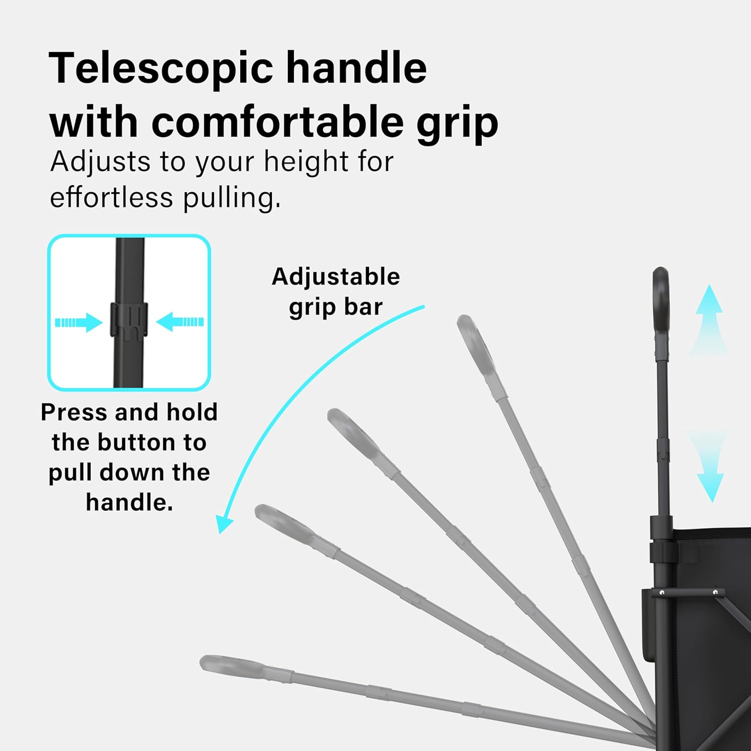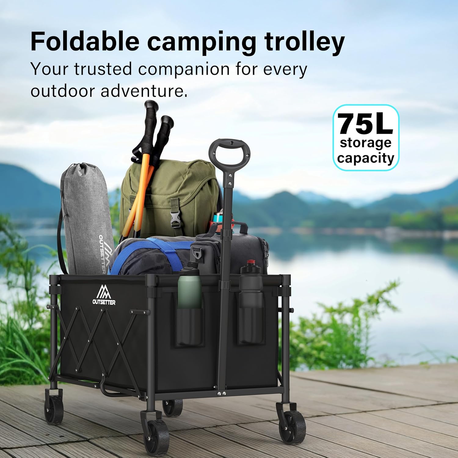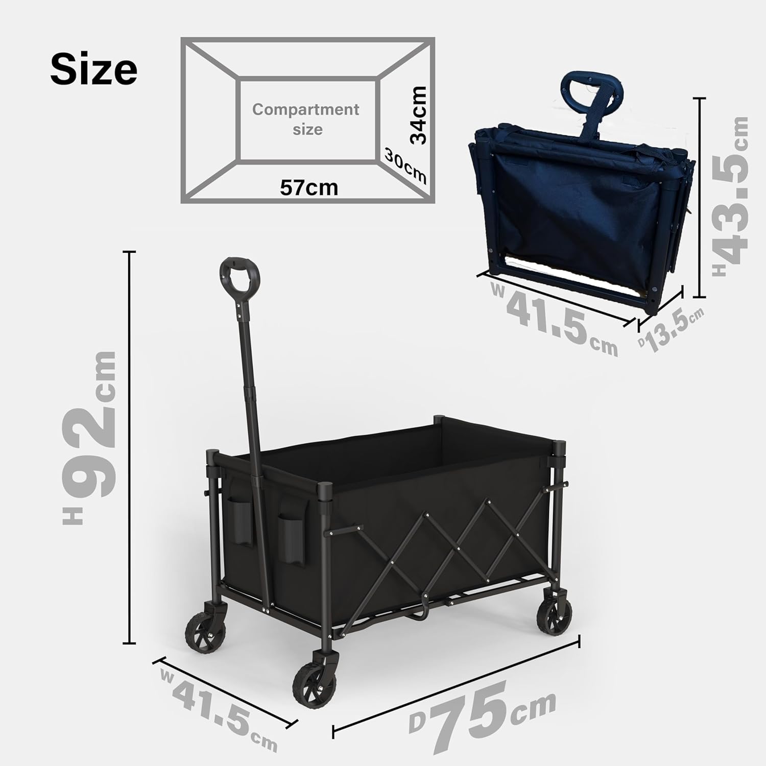 75L Festival Trolley Folding Trolley Cart on Wheels, Portal Festival Camping Wagons Cart with Adjustable Handle, Foldable Wagon for Camping, Garden, Beach, Shopping, Outdoor