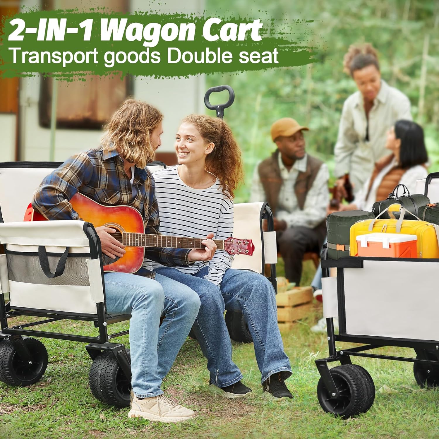 Festival Trolley on Wheels Folding Wagon, Portable Camping Cart Converts into a 2 Persons Chair, Foldable Trolly Extra Wide Wheels Adjustable Handle for Camping Sports Garden Picnic Shopping Fishing
