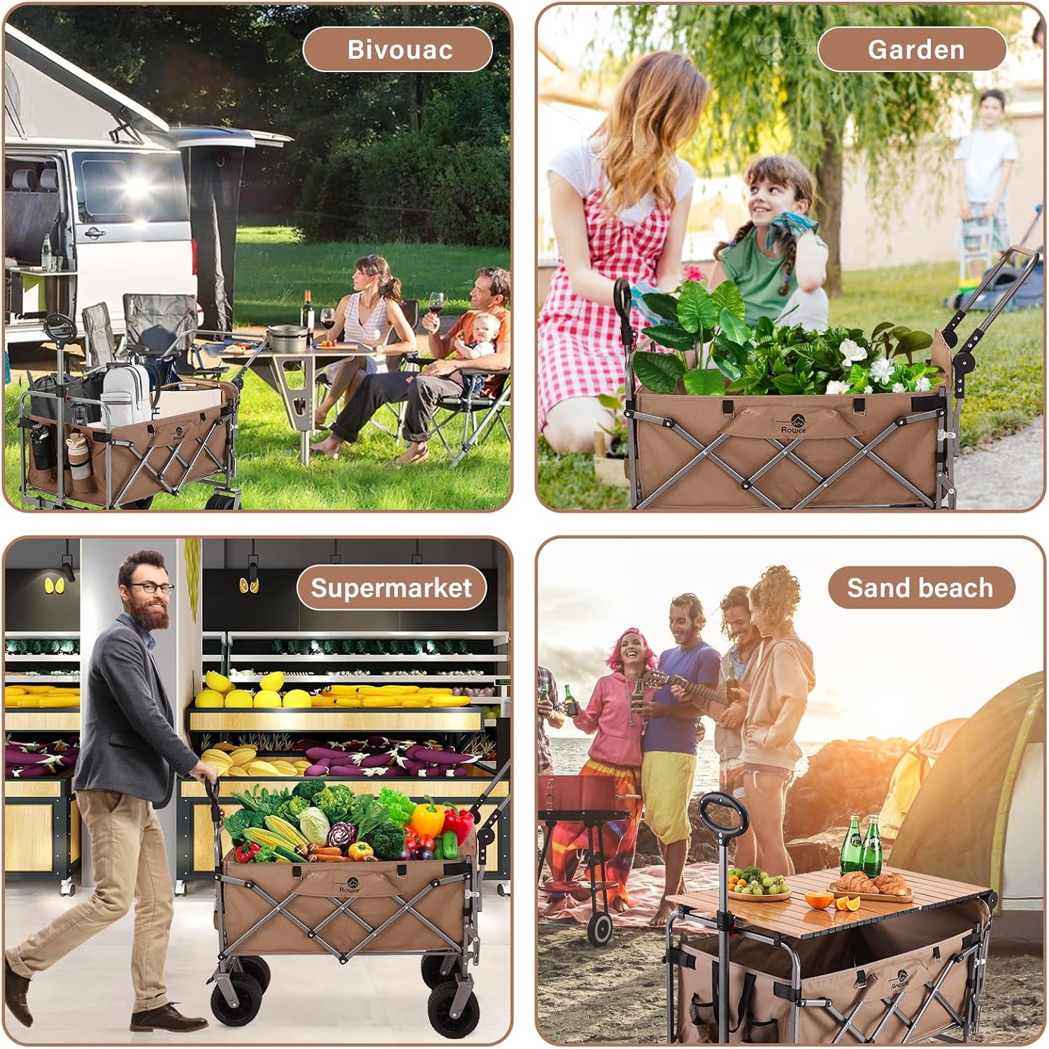 Rowce 225L Festival Trolley with Brakes, Push & Pull Beach Trolley Cart with Adjustable Tailgate, Camping Cart Foldable for Beach Picnic Outdoor, Extra Wide Wheels, Adjustable Handle